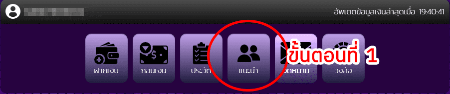 1. เข้าสู่ระบบ เลือกเมนู "แนะนำ"