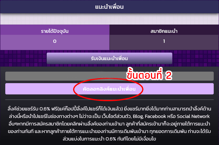 2. "คัดลอกลิงค์แนะนำเพื่อน" แล้วนำไปแชร์ต่อ